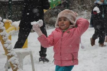 Afyonkarahisar'da Sabah Saatlerinde Etkisini Arttıran Kar Yağışı Sonrası Afyonkarahisar Beyaza Büründü. Kar Yağışının Etkili Olduğu Kentte Çocuklar Ders Aralarında Kartopu Oynayarak Beyaz Örtünün Tadını Çıkardılar.