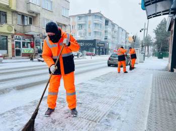 Afyonkarahisar’Da Sabaha Karşı Başlayan Kar Yağışı Sonrası Beyaza Bürünen Kentte Belediye Ekipleri Karla Mücadelesini Sürdürüyor.