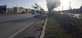 Afyonkarahisar’Da Lodos Ağaçları Yerinden Söktü, Tırları Devirme Noktasına Getirdi