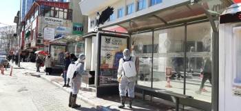 Afyonkarahisar Belediyesi Korona Virüse Karşı Alınan Tedbirler Kapsamında Dezenfeksiyon Çalışmalarına Ara Vermeden Devam Ederken Ekipler Şehrin Ortak Kullanım Alanlarını Dezenfekte Ediyor.