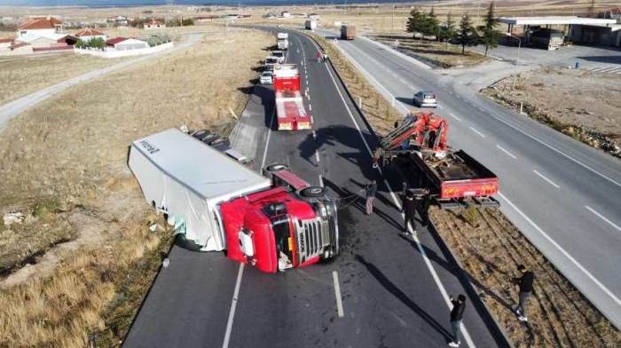 Afyonkarahisar Emirdağ’da kontrolden çıkan bir tır devrildi, yaklaşık 20 ton meyve yola saçıldı. Kazada ölen veya yaralanan olmadı.