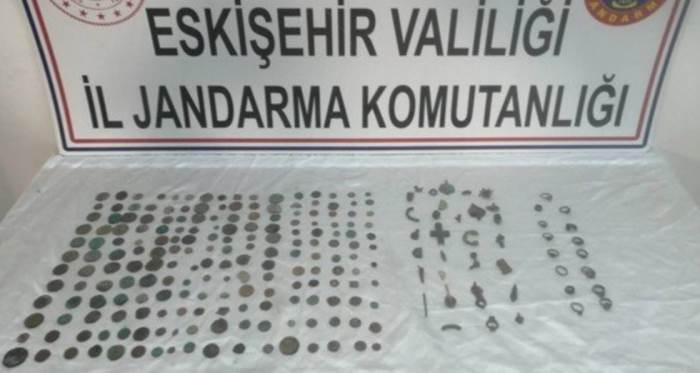 Jandarma KOM ve Seyitgazi İlçe Jandarma Komutanlığı ekiplerince 3 şüpheli yakalanırken, şüphelilerin ev ve araçlarında yapılan aramalarda Roma dönemine ait olduğu değerlendirilen 191 sikke,15 yüzük ve 29 nesne ele geçirildi.