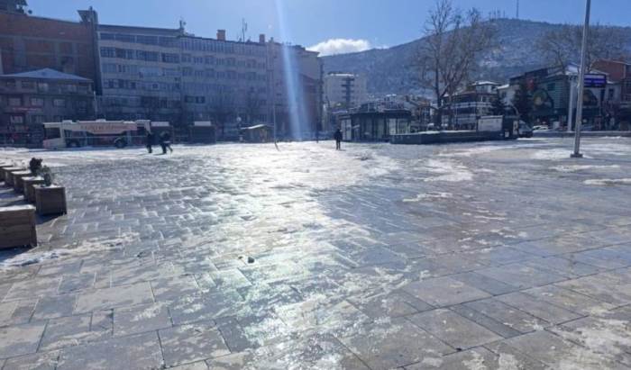 Kentte meteorolojinin uyarıları sonrası dün gece aralıklarla devam eden kar yağışı sonrası etraf beyaza büründü. Günün ilk ışıkları ile kar yağışı yerini soğuk ve dondurucu havaya bıraktı. Kentte termometreler sıfır derecelerin altına düşerek eksi 8’leri gördü. Buz kesen soğukta birçok çeşme ile birlikte süs havuzları da dondu. Soğuk havadan dolayı dışarı çıkmadıkları gözlenirken, parklar, bahçeler ve meydanlar boş kaldı.