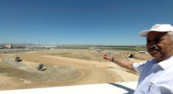 Belediye Başkanı Mehmet Zeybek Pisti Gösterirken.