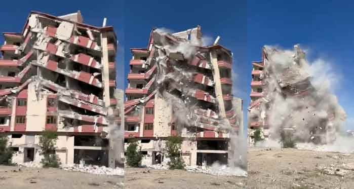 Ağır hasarlı bina, tek dokunuşla böyle yıkıldı
