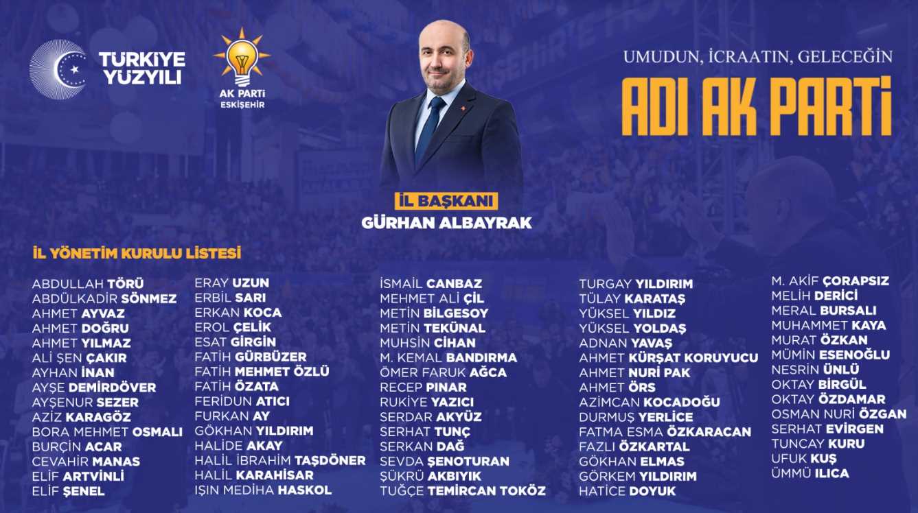 İşte AK Parti Eskişehir İl Yönetim Kurulu’nda yer alan isimler: