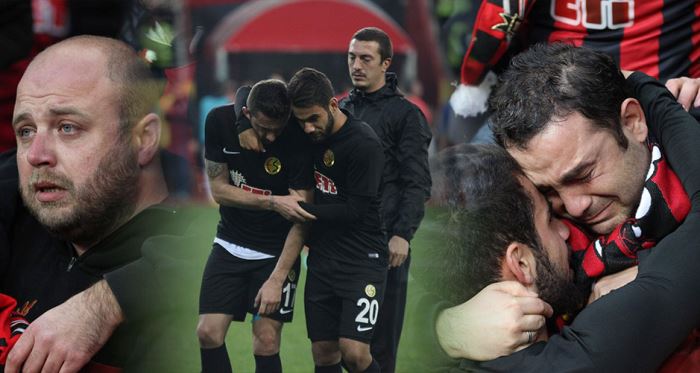 Eskişehirspor’un adeta yok olma tehdidiyle karşı karşıya kaldığı günlerde, birbirlerine sarılan futbolcu ve taraftarlar gözyaşlarına hakim olamadı. Duygusal anların yaşandığı statta, Türk futbolunun kilometre taşlarından biri olan Eskişehirspor için dökülen gözyaşları ise objektiflere yansıdı. Bazı taraftarlar ise, gözyaşları içinde kırmızı siyahlı futbolcuları alkışlayarak, uzaktan izledi.