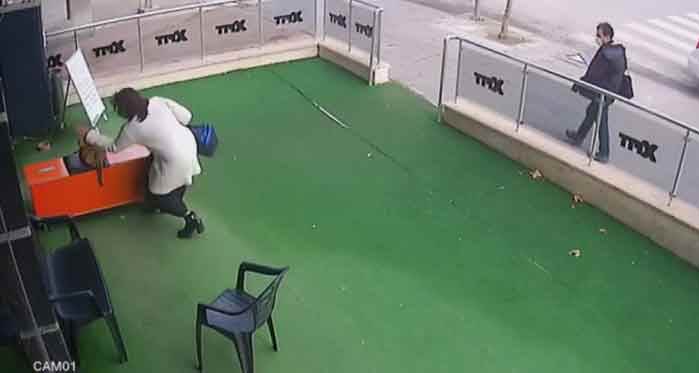 Acımasız kadın, korkuyla yerinden fırlayan kedinin yanına tekrar gelerek bu sefer de elindeki çantayı hayvanın üzerine fırlattı. Çantanın kendisine geldiğini fark eden talihsiz kedi, korkulukların arasından kaçarak canını zor kurtardı. Güvenlik kameralarına saniye saniye yansıyan görüntülere sosyal medya kullanıcıları da tepki gösterdi.