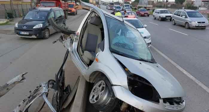 Samsun'da yoldan çıkan otomobilin karşı şeride geçerek başka bir otomobil ile çarpışması sonucu meydana gelen kazada paramparça olan otomobilin kadın sürücüsü kazayı yaralı olarak atlattı