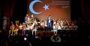 Sanatçı Ali Altay ile Barış Manço şarkılarını seslendiren çocuklar konser sonunda hep birlikte Türk Bayrakları eşliğinde 10. Yıl Marşı’nı seslendirdi. (İHA)