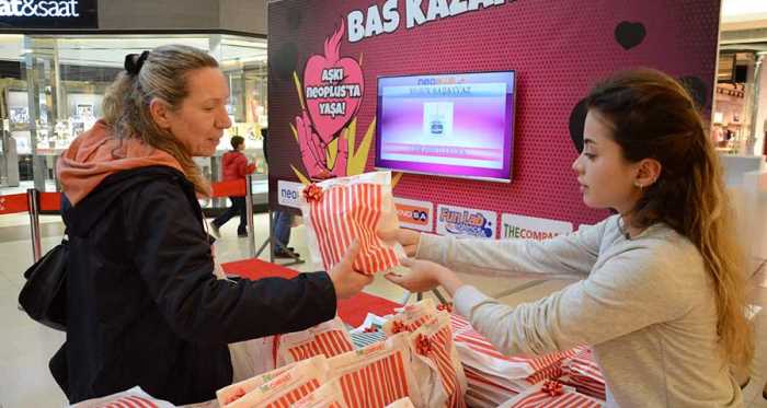 JLL tarafından yönetilen Neoplus Outlet ve Yaşam Merkezi’nde 12-14 şubat tarihleri arasında mağazalardan tek seferde 75 TL, Carrefoursa’dan 100 TL alışveriş yapan ziyaretçilere bas-kazan kampanyası ile binlerce hediye dağıtılıyor. Kurulan stantta kimi kendi, kimi çocuğuyla, eşiyle veya sevgilisiyle butona bastıran ziyaretçiler, sürpriz hediyelerden birini anında kazanma şansı yakalıyor.