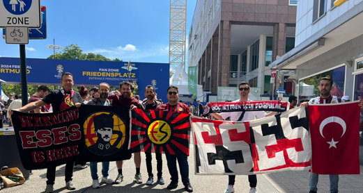 14 Temmuz’da sona erecek olan Euro 2024 Avrupa Futbol Şampiyonası’nda artık grup maçlarının sonuna gelindi. Türkiye, Gürcistan ve Portekizle karşılaşırken bu maçlarda Türk taraftarlar ülkesini yalnız bırakmadı. Eskişehirsporlu taraftarlarda maçlara ilgi gösterirken ‘’Es Es’ pankartları açmayı ihmal etmedi. Taraftarlar ayrıca BVB Dortmund Stadı’nın önündeki Dede’nin grafitinin de önünde fotoğraf çektirdi. Dede Eskişehirspor’da forma giymişti.