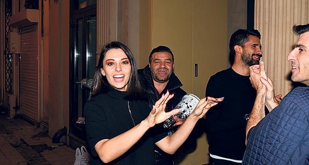 Asmalımescit’teki bir mekanda eğlenen çift, çıkışta etraflarını saran sokak çalgıcılarıyla göbek attı. Darbuka ve kemana kayıtsız kalamayan ikiliden Potuk, “Düğünümüzde de böyle oynayalım” dedi.