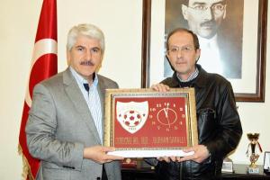 Altayspor Başkanı Yaşar Gedik, yaptırdıkları Altayspor hatıra saatini Burhan Sakallı'ya takdim etti.