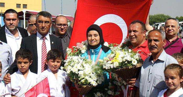 Gamze Keresteci'yi, Eskişehir Şehirlerarası Otobüs Terminali'nde Gençlik Hizmetleri ve Spor İl Müdürü Hüseyin Aksoy ve sporcular çiçeklerle karşıladı.