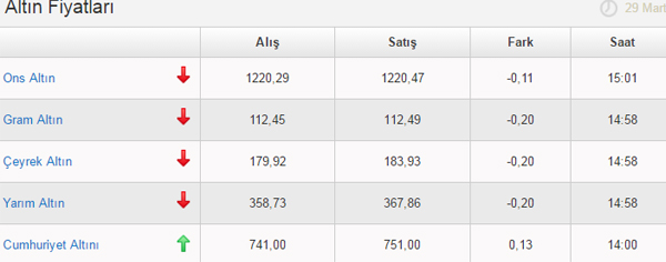 Cuma günü Paskalya tatili nedeniyle işlem görmeyen altının onsu, dün 1.208 dolarla son bir ayın en düşük seviyesine geriledi.