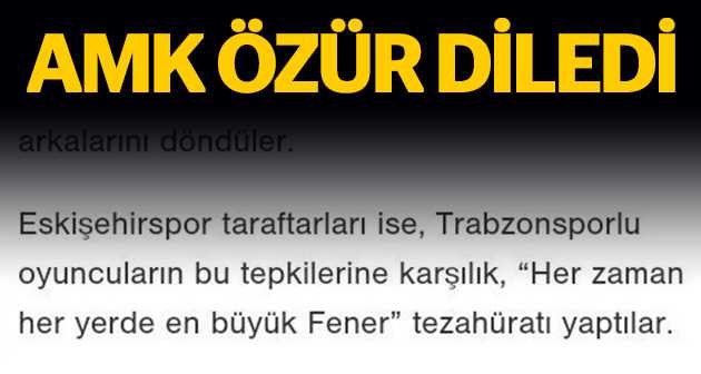 Haberde Eskişehirspor taraftarlarının ‘Her zaman her yerde en büyük Fener’ tezahüratı yaptığı belirtildi. Bu yanlış haber sonrası taraftarlar AMK Gazetesi’ni topa tuttu. Gazete daha sonra sayfasından Eskişehirspor taraftarlarından özür diledi.