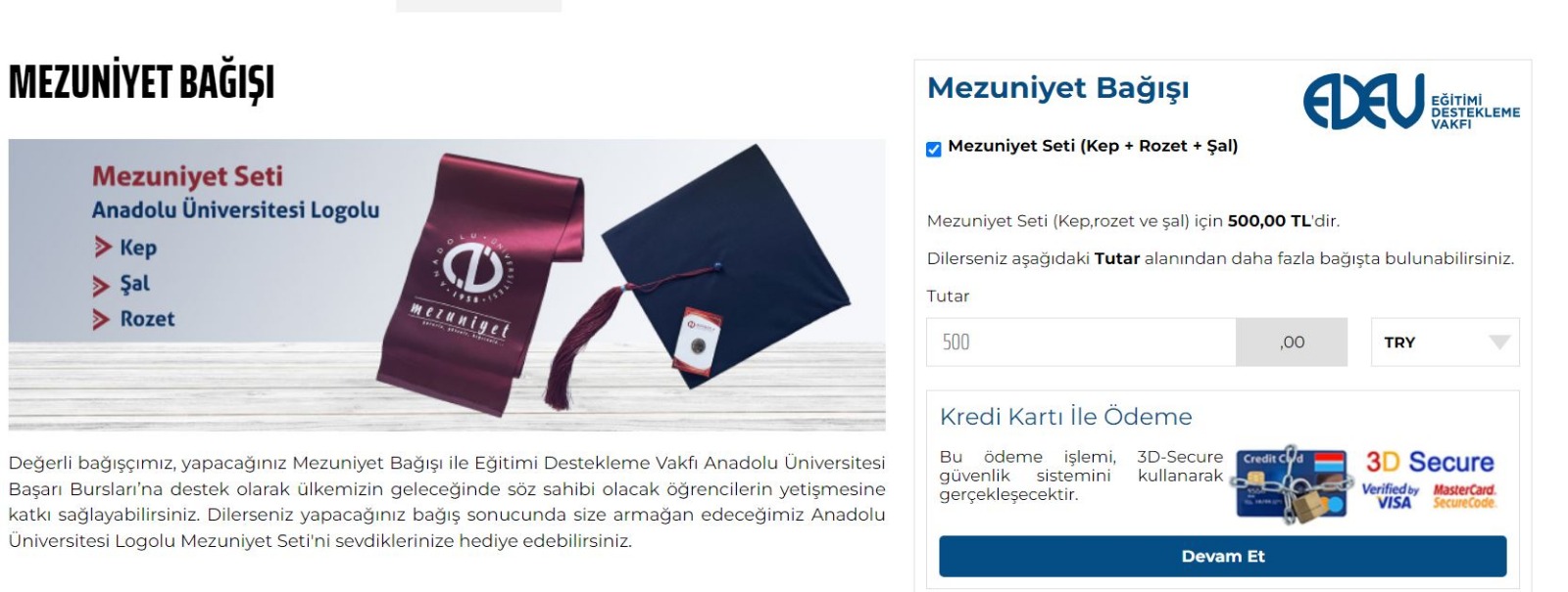 Mezuniyet Seti ayrıca EDEV’in internet sitesi üzerinden de “Mezuniyet Bağışı” adı altında minimum 500 TL karşılığında satışa sunuldu. Birçok öğrencinin de 500 TL’nin çok yüksek bir meblağ olduğunu belirterek törene katılmayacağı öğrenildi. Bu mezuniyet setinin ne kadara mâl edildiği ve Anadolu Üniversitesi’nin bu satışlardan ne kadar kazanacağı merak konusu olurken akıllara “Anadolu Üniversitesi mezuniyetten kâr etmeye mi çalışıyor?” sorusu geldi.