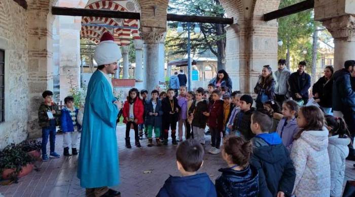 Turizm Fakültesi öğretim elemanı Arş. Gör. Özgür Koyun gezide külliyenin tarihi süreci, mimarisi ve Eskişehir’in kültürel yapısındaki konumu hakkında öğrencilere detaylı bilgiler verirken Turizm Fakültesi öğrencisi Furkan Bilici, Külliyenin banisi Çoban Mustafa Paşa’yı temsili bir canlandırmayla tanıttı.