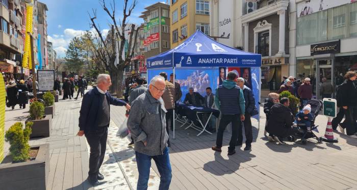 Anahtar Parti, kent genelinde kurduğu üye çadırlarıyla saha çalışmalarını sürdürüyor. Vatandaşlarla birebir temas kurulan stantlarda hem parti politikaları anlatılıyor hem de yeni üye kayıtları yapılıyor.