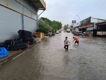 Bilecik’te öğleden sonra bastıran gök gürültülü sağanak yağış sonrası Küçük Sanayi Sitesi yollarında sular bir çok dükkanı girerken, biriken suyun keyfini çocuklar çıkardı.