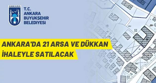 ilan.gov.tr’de yer alan ilana göre,  Ankara Büyükşehir Belediyesi, Çankaya, Çubuk, Etimesgut, Gölbaşı, Mamak, Yenimahalle, Çankaya ve Keçiören ilçelerinde bulunan muhtelif nitelikteki 21 adet arsa ile Yenimahalle ilçesinde bulunan 1 adet dükkanı, 2886 sayılı Devlet İhale Kanunu’nun 36. maddesine göre kapalı zarf usulü ile satacak.