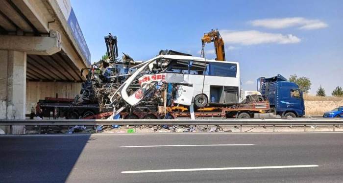 Ankara'da feci kazada hurdaya dönen otobüs yoldan kaldırıldı