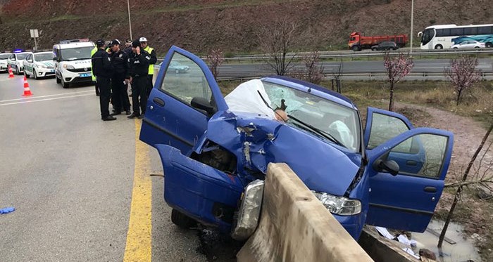 Ankara'da yağmur nedeniyle kayganlaşan zeminde kontrolden çıkan otomobil beton bariyerlere çarptı. Kazada 1 kişi hayatını kaybederken 2 kişi ağır yaralandı.