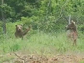 Arapdede köyü ile Sarıdayı köyü arasında kırsal bölgede tel ile çevrili bir tarlada yiyecek arayan ayılar, telefonuyla görüntüyü çeken vatandaşı fark etmeleriyle panikle kaçışmaya başladılar.