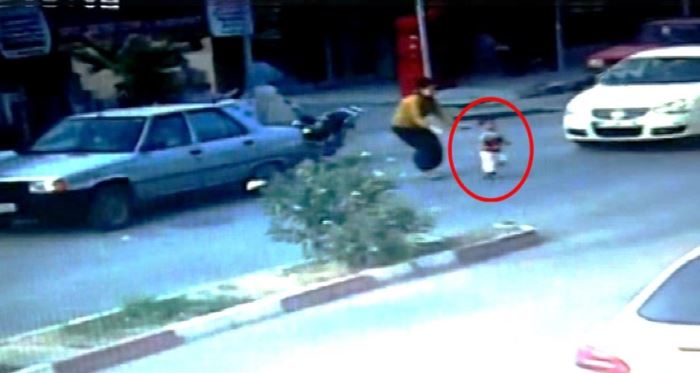 Bu arada, 3 yaşındaki çocuğun hayatını kaybettiği kaza bir işyerine ait güvenlik kamerası tarafından saniye saniye görüntülendi. Görüntülerde annesinin elinden kurtularak caddeye fırlayan çocuk ve onu yakalamaya çalışan anneye cadde üzerinde seyreden otomobilin çarpması yer alıyor.