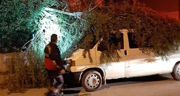 Araçlar fırtınanın devirdiği ağaçların altında kaldı