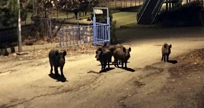 Tunceli’de aç kalan yaban domuzları şehre inmeyi alışkanlık haline getirdi.