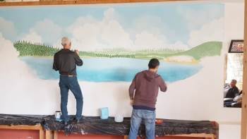 Emet Kaymakamlığı tarafından eski hamamın yıkılarak yenisinin yapıldığı Yeniceköy şifa hamamında, Emet ilçesi Görsel Sanatlar öğretmeni Muhammed Ağçay tarafından hamam duvarları, bölgenin görsel zenginliklerinin duvarlara boyanmasıyla, doyumsuz manzaralar ortaya çıkartıyor.