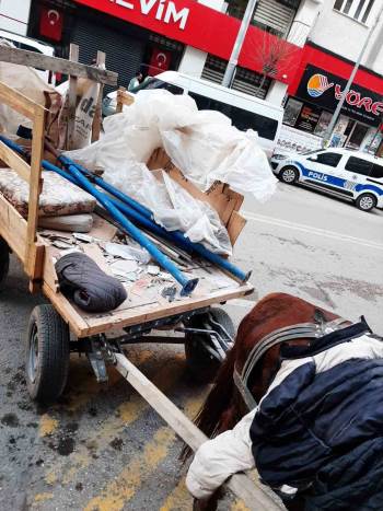 Eskişehir’de polis ekiplerince durumundan şüphelenilerek durdurulan at arabasında ele geçirilen kilolarca çalıntı inşaat demiri muhafaza altına alındı