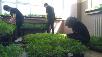Mart ayında başlattıkları proje ile 3 bin 800 fidanın yetiştirildiğini söyleyen Okul Edebiyat Öğretmeni Galip Teber, “Bizler proje çerçevesinde Mart ayında Kütahya’nın çevre köylerinde ata tohumları ile üretim yapan büyüklerimizden tohumlarımızı elde ettik. Biber olarak Mohat biberi, Emet domatesi, Gediz domatesi ve Muğla domatesi tohumlarını elde ettik ve öğrencilerimiz ile birlikte Nisan ayı başında tohumları toprakla buluşturduk. Organize bir şekilde gübre vererek ata tohumlarımızdan fidelerimizi elde ettik. Alanımız bu yıl dar olduğu için bu yıl 3 bin 800 adet fide yetiştirdik. Pandemi ile birlikte tarımın önemi bir kez daha ülke için önemli olduğu günyüzüne çıkmış oldu. Bizimde sloganımız şu herkes tarım yapabilir, fide bizden yetiştirmek bizden dedik. Şuan için bizim 3 tane ofisimiz var, gelecek yıllarda oraları da kullanarak fidelerimizi artırmayı ve ata tohumlarını yaşatmayı hedefliyoruz” dedi.