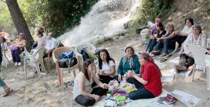 Kelimeler tükeniyor, ama mangal dumanı sadece geçici bir süre için kesiliyor. Duman ortadan kaybolduğunda yeşilin tonlarını seçiyor gözümüz. Uzun ağaçlar, beyaz toprak ve şelalenin coşkun teşekkürü, kuş seslerinin kıyısında yankılanıyor. “İnsanımız, lütfen… Yeşilin tonlarını siz de görün, dumanınızla kirletmeyin. Bari burada et değil de kısır, domates, marul yiyin.” diyorum içimden.