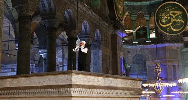 Ayasofya'da, Diyanet İşleri Başkanı Mehmet Görmez’in katıldığı Kadir Gecesi programının ardından 85 yıl sonra sabah namazı ezanı okundu.