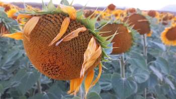Verimli tarım arazileri üzerinde yer alan Afyonkarahisar’da yıl boyunca onlarca tohum bereketli topraklarla buluşurken, nisan-mayıs ayında ekilen yağlık ayçiçeği tarlaları da çiçek açtı. Görüntüler Afyonkarahisar’ın Bayat ilçesine bağlı Derbent köyünden. Daha önce arpa, buğday ve yulaf ekilen tarlalara bu yıl ayçiçekleri ekildi. Diğer illere göre geç açan ayçiçeği tarlaları dron ile havadan görüntülendi. İhlas Haber Ajansı (İHA) dronlarına yansıyan görüntülerde kilometrelerce uzunluktaki ayçiçeği tarlaları yer aldı.