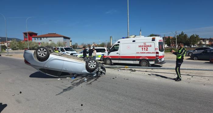 Aydınlatma direğine çarpan otomobil ters döndü: 1 yaralı