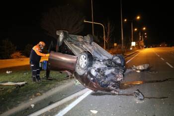 Videoyu Aç Aydınlatma Direğini Devirerek Takla Atan Araçta 3 Kişi Yaralandı