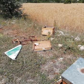 Kütahya'nın Emet İlçesinde Arı Üreticilerinin 6 Arı Kovanını Ayılar Parçaladı, Kovanlardaki Arılar İse Telef Oldu.