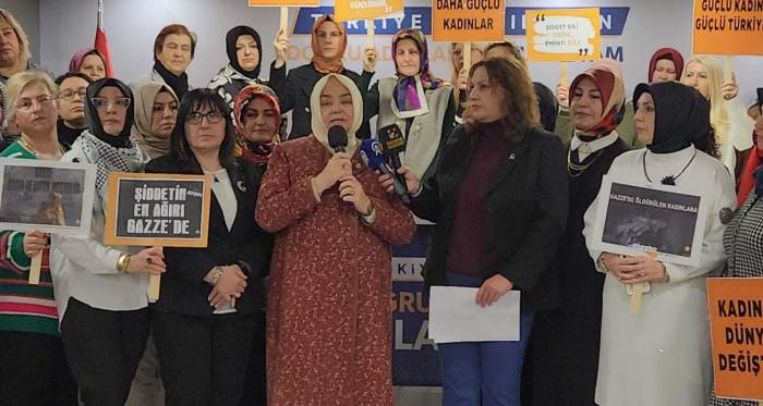 Konuşmalarına İsrail-Filistin savaşında yaşanan şiddete dikkat çekerek başlayan Ak Parti Kadın Kolları Başkanı Özlem Ünalır, "Kadın ve çocuk mezarlığına dönen Gazze’deki acıların gölgesinde bu açıklamamızı yapıyoruz. Ateşkesin kalıcı olmasını diliyoruz. Dün Bosna’da bugün Gazze’de olduğu gibi çatışma bölgelerinde kadınlara uygulanan insanlık dışı fiziksel ve cinsel saldırılar ve toplu şiddetin, aynı zamanda savaş suçu olduğunu ifade ederek sözlerime başlamak istiyorum.