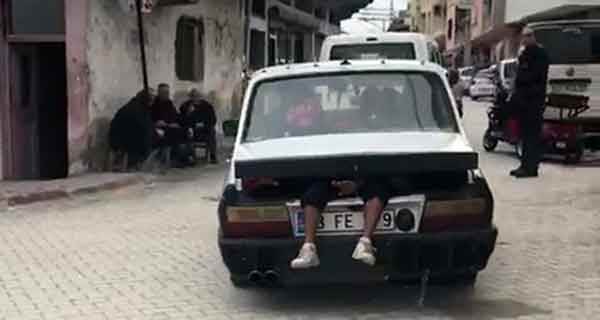Osmaniye Kadirli'nin en işlek caddesi olan Andırın Caddesi üzerinde bir otomobilin bagaj kısmından bacakları dışarı şekilde sarkmış kişiyi görenler hemen telefonlarına sarıldı. Kafası ve gövdesi otomobilin bagajında bacakları ise otomobilin dışına sarkmış kişi otomobil ile kilometrelerce bu şekilde yolculuk yaptı. Önce hareketsiz şekilde duran bacaklar daha sonra hareket edince arkadan gelen diğer araçlarda bulunanlarda rahat bir nefes aldı. Yaşanan bu ilginç yolculuk bir başka araç sürücüsü tarafından cep telefonuyla anbean görüntülendi.