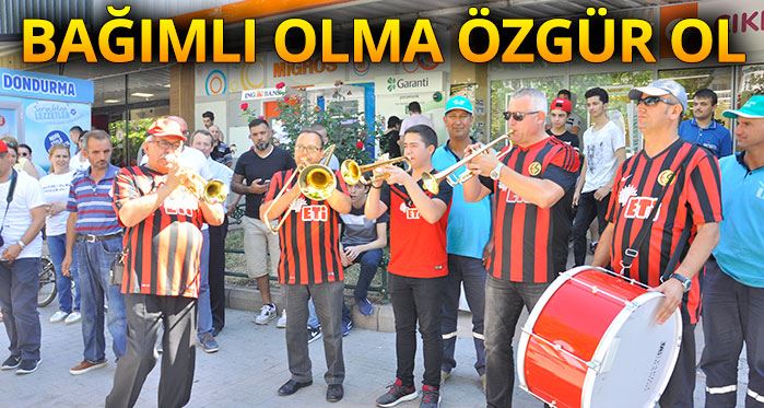"26 Haziran Dünya Uyuşturucu Kullanımı ve Kaçakçılığı  İle Mücadele Günü" kapsamında   Uyuşturucu ile Mücadele İl Kurulu Toplantısında alınan karar gereği Halk Sağlığı Müdürlüğü öncülüğünde kapsamında dün Adalar'da 'Bağımlı Olma, Özgür Ol' konulu bir etkinlik düzenlendi. Etkinliğe Büyükşehir Belediyesi, Tepebaşı Belediyesi, Kamu Hastaneleri Genel Sekreterliği, Yeşilay gibi kurumlarda destek verdi.  Etkinlikte Es Es Bando ve Tepebaşı Belediye Eko- Ritim Grubu bir gösteri sundu.  Uyuşturucu kullanımına dikkat çekmek adına düzenlenen etkinlikte konuşan Halk Sağlığı Müdür Vekili Aslı Melek Zeytin, " Uyuşturucu madde suçları  geçmişten bugüne  olduğu gibi gelecekte de  insanlığı tehdit eden en büyük tehlikeler  arasında yer almakta olup  toplumların güven ve istikrarını zedelemekte, ekonomik ve kültürel  temellerine zarar vermektedir" dedi. Zeytin, "İlimizdeki uyuşturucu madde kaçakçılığı, kullanımı ve bağımlılığı  ile ilgili  konu ve gelişmeleri  takip ve tespit ederek, buna ilişkin çözüm önerileri  üretmek ve hayata geçirmek adına ve farkındalık  yaratmak adına bu tür etkinliğe imza attık" diye konuştu.