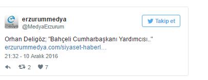Ankara'da düzenlenen "Ankara'da Erzurum Günleri" etkinliğine katılan Deligöz, önceki gün Meclis'e sunulan, 21 maddelik anayasa değişiklik paketine ilişkin konuştu. Burada yaptığı konuşmada Deligöz şunları söyledi: "İnşallah bu değişiklik referandumdan olumlu oyu alacak ve Cumhurbaşkanımız yeni sistemde Cumhurbaşkanı, Devlet Bahçeli de yardımcısı olacak" dedi. AK Partili Deligöz, yerel bir gazetenin bu sözlerini haber yapıp tweet atmasının ardından kendi hesabından retweet yaptı. Sputnik Türkiye'nin sözlerini haber yapmasının ardından ise söz konusu tweetlerini sildi.