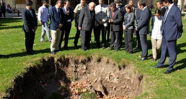 "O çukur biraz sansasyonel bir şeye dönüştürülmek istendi, ama değil. Bazı basın yayın organlarında 3 metre yazmış. Çapı 3 metre olabilir de derinlik 1 metre kadar. Ziyaretçilerimiz için tehlike arz edecek bir şey söz konusu değil. Yakındaki sarnıçla irtibatlı künklerin zamanla çürümesinden ve oluşan boşluğa su dolmasından kaynaklanan bir olay olduğunu düşünüyorlar. Gezilen yerlerde de, binaların oturduğu yerlerde de zemin etütleri sürekli yapılıyor."