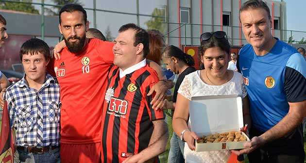 Merkezde bulunan engelli bireyler eğitmenleri eşliğinde Eskişehirspor tesislerine gelerek, Kırmızı Şimşeklerin antrenmanına misafir oldu. Vali Hanifi Demirkol Tesisleri'nde Teknik Direktör Alpay Özalan tarafından karşılanan engelliler, Eskişehirspor bayrakları ile futbolcularla buluştu. Eskişehirsporlu futbolcuların alkışlar eşliğinde karşıladığı engelliler, oyuncular ile bol bol fotoğraf çektirdi. Eskişehirspor Teknik Direktörü Alpay Özalan daha önce de Tepebaşı Belediyesi Gökkuşağı Down Sendromlu Kafeyi ziyaret ettiklerini belirterek, "Tepebaşı Belediyesi ve Başkan Ataç’ı engellilere gösterdiği ilgiden dolayı kutluyorum" dedi.
