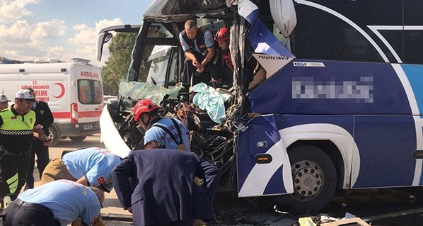 Balıkesir'de yolcu otobüsü temizlik aracına çarptı. Kazada 1 kişi öldü, 17 kişi yaralandı.