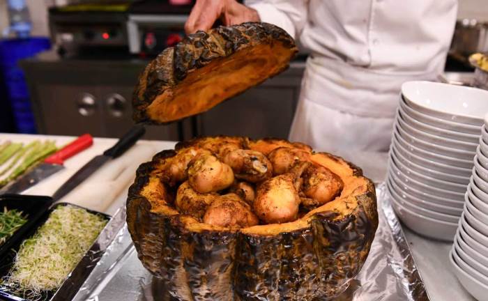 Konuşmaların ardından ise şeflerin ata tohumundan üretilen ve coğrafi işaretli olan Kızılinler bal kabağından yapmış oldukları, bal kabağı büyüsü çorbası, bal kabağı buketi isminin verildiği kabak içinde yapılan tavuk baget, cheesecake, bal kabağının çekirdekleriyle süslenmiş kıtır halka, bal kabağı tatlısı, bal kabağı kurabiyesinin tadımına geçildi. Yemeklerin servisini ise Gökkuşağı Kafede istihdam edilen özel bireyler tarafından yapıldı. Ayrıca Kızılinler bal kabağından hazırlanan ürünler Gökkuşağı Kafe’nin menüsünde yer almaya devam edecek. Katılımcılar, bal kabağından yapılan ürünleri tadarak daha da çeşitlendirilmesi için çalışmaların devam etmesi gerektiğini vurguladı.