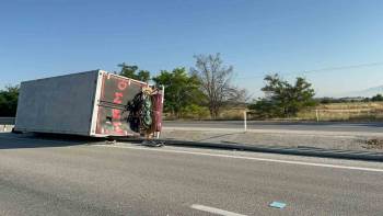 Bariyerleri Yıkıp Refüje Devrilen Kamyonda 4 Kişi Yaralandı